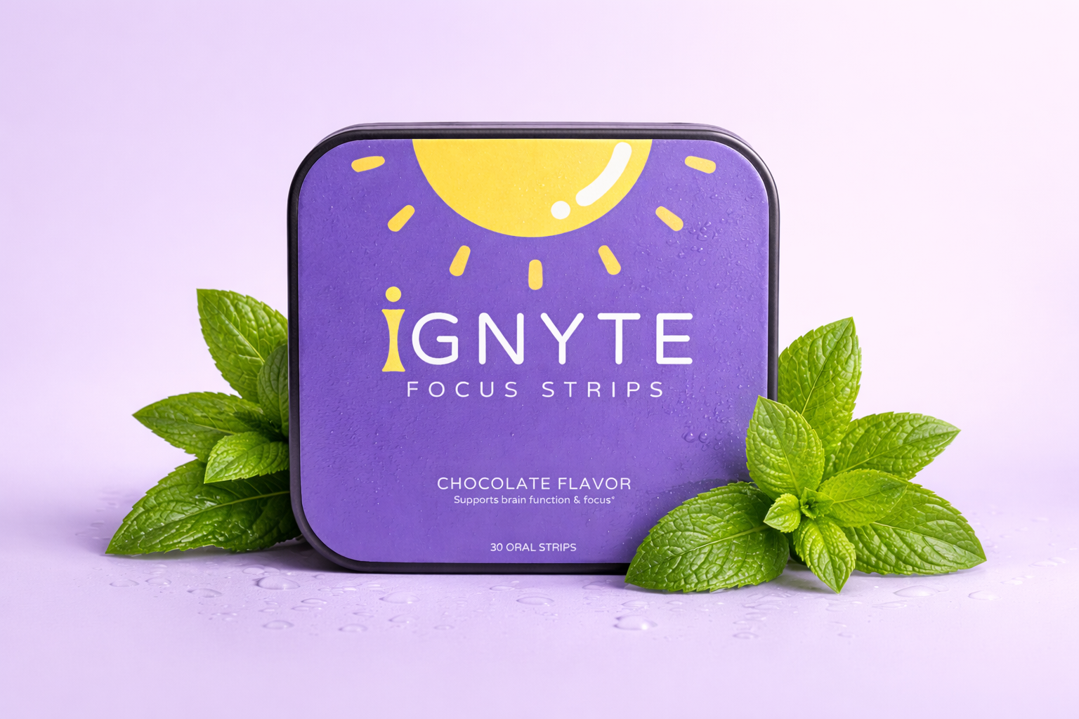 IGNYTE Focus Strips are fast-dissolving oral strips designed to support calm, sustained focus and mental clarity without caffeine or stimulants. They help you switch on when it’s time to perform, without overstimulation, jitters, or crashes.